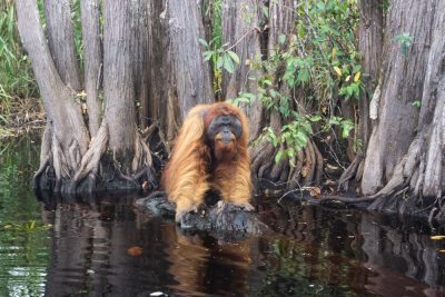 Orangutans are more solitary than other apes. Males are loners. As they move through the forest they make plenty of rumbling, howling calls to ensure that they stay out of each other’s way. The “long call” can be heard 1.2 miles away.